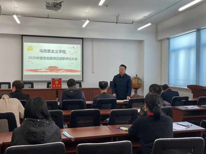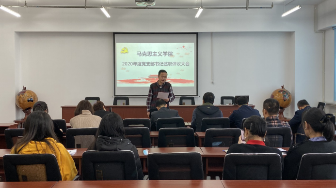为坚持和加强党的全面领导,夯实基层党建工作,落实管党治党政治责任,推进全面从严治党向基层延伸,着力提高基层党建工作质量,充分发挥学校基层党组织战斗堡垒作用和师生党员先锋模范作用。2020年12月17日在E1604会议召开马克思主义学院2020年基层党支部书记抓基层党建工作述职评议考核会议,学院党委贯彻落实全面从严治党要求,压紧压实党建工作责任。会议由学院党委书记肖庆生主持,学院班子成员、党委委员、各支部书记、师生党员代表参加本次会议。