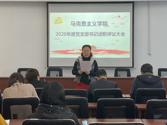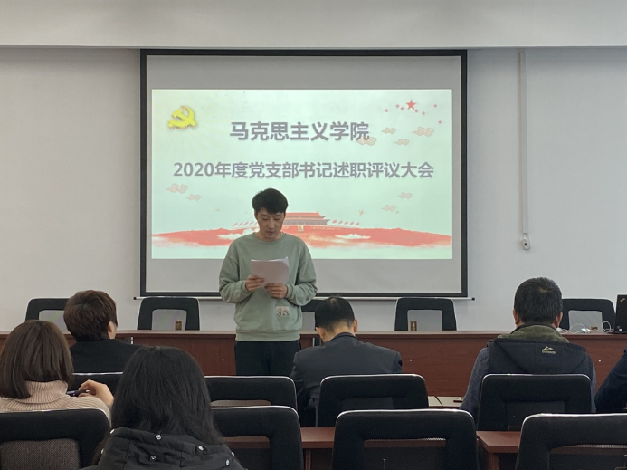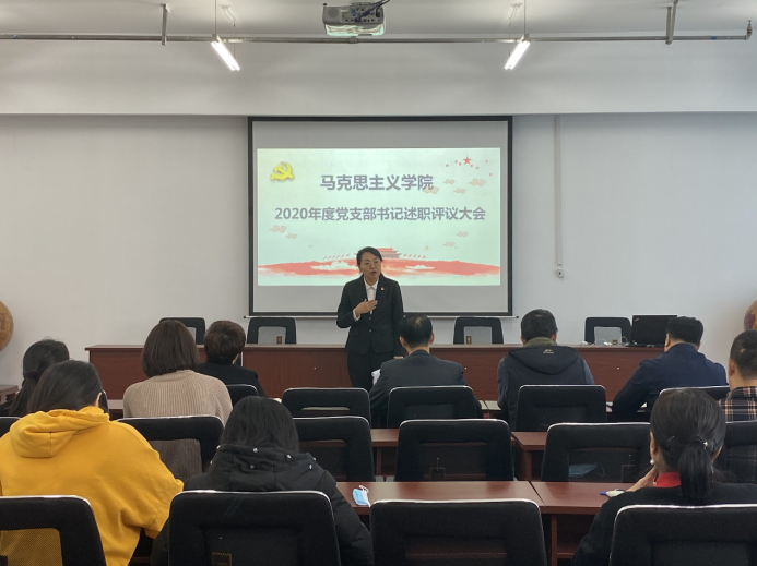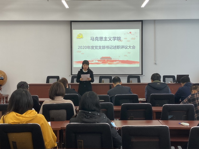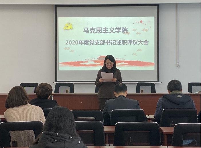 会上,学院党委书记肖庆生对学院2020年基层党支部书记抓基层党建工作述职做出点评,他指出:本年度述职大会开得很成功,取得预期效果。各位支部书记本年度工作抓得扎实、克服诸多困难,做了大量卓有成效的工作。支部总结全面客观、问题分析到位、下一步工作思路及举措切实可行、可操作性强。肖书记就做好基层党建工作提出4点意见:1.坚持围绕中心抓党建、抓好党建促发展的原则。提高党支部组织力为重点,突出政治功能,充分发挥支部战斗堡垒作用,组织带领广大党员在重点马克思主义学院建设、学科建设、政治生态建设、发挥学科优势服务学校发展等方面做表率和排头兵。在打造快乐工作、快乐交往、快乐生活的学院文化方面做贡献。2.创新党支部活动方式,将支部生活与教书育人、管理育人、服务育人,与教职工的工作成长紧密结合,增强党组织的吸引力、亲和力和凝聚力。主题活动,除了学习外,可以开展教学和科研讨交流,相互学习、相互促进。3.加强学习、思考和实践,提高支部书记政治意识、大局意识、责任意识,提升做好工作的能力与本领。4.对于支部书记要加强培养和关怀,业务上指导、事业上支持、待遇及个人成长方面给予政策上倾斜。