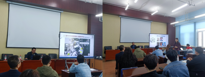 报告会上,杨湛教授深入浅出地介绍了微纳观特有的尺度效应和界面力学现象,总结了微纳机器人相关的科学问题和关键技术。对微纳操作机器人系统设计、亚纳米精度的跨尺度运动生成机理与运动控制、基于显微视觉的微纳观三维测量与重建、纳米操作机器人多手协同操作及碳纳米管自动拾取操作等内容做了详细介绍;此外,还着重介绍了所突破的当前微纳机器人在靶向药物传递中面临的生物兼容性制备、可控驱动与靶向、群体协同作业等关键技术难题。多位师生与杨湛教授进行了面对面交流和热烈讨论,本次学术报告会在轻松、友好、热烈的氛围中进行。