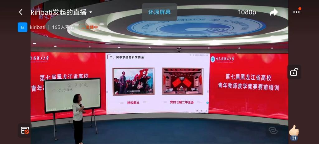 工科组电气学院汪冬梅、理科组理学院杜士晗、文科组外国语学院徐丹、思想政治课专项组马克思主义学院张丽红等4名参赛选手,严格按照省青教赛的竞赛流程和要求进行模拟课堂教学展示和教学反思,采取“无生上课”形式,从教学内容、教学组织、教学语言与教态等方面进行了精彩展示。理学院院长宋清昆、外国语学院院长马艳辉、国家级课程思政教学名师赵辉、马克思主义学院教授李庆华、教务处副处长沈涛等5名专家评委,从教学设计、教学方法、教学效果、教学反思等方面,对参赛选手进行了精准点评和悉心指导,帮助选手解决备赛中存在的问题和困惑。近200名教师通过网络直播在线观摩,共同学习如何“上好一门课”。