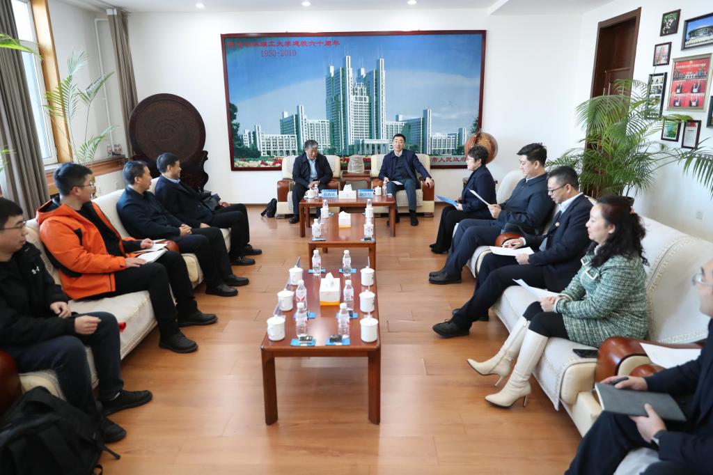 1月8日上午,中国万达集团总裁助理、技术中心总经理曲春林一行7人来校洽谈合作,学校党委副书记赵水杉在教学主楼会客厅会见了曲春林一行。双方围绕进一步提高育人成效,全面推进校企战略合作等相关事宜举行座谈会。