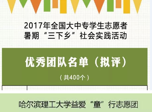 自动化学院“益爱‘童’行志愿团”荣获2017年全国社会实践优秀团队