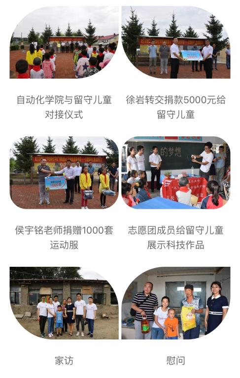 自动化学院社会实践小分队在今年暑期开展“益爱‘童’行”主题社会实践活动,团队在7月初为齐齐哈尔泰来镇53名农村留守儿童募集到资金5069.4元,运动服1000多套,爱心书籍900余本,在当地学校建立图书角,成立自动化学院奖、助学金,帮助更多留守儿童顺利完成学业。同时,结合自动化学院第二课堂建设开展模式,将理工元素引入泰来留守儿童第二课堂,开展“我的梦想”主题团活,建立集经济、学业、情感和心理等方面的“四个关爱体系”以及到留守儿童家中进行家访慰问,形成留守儿童档案,为建立长效志愿服务机制打下基础。自动化学院党委副书记徐岩指出:“我院一直高度重视社会实践工作,将其作为我院育人工作的重要方式之一,积极为学生搭建培养提高创造能力、实践能力、就业能力的平台,扩大学生与社会的接触面,在培养未来优秀的工程师过程中努力提高学生社会责任感、使命感,在强化专业技能的同时培养学生人文精神,使大学生在参与社会实际的过程中受到教育,形成成果,更好助力我院工程认证工作顺利开展”。同样,参与工程认证的材料学院暑期社会实践团队——习近平系列重要讲话精神和治国理政新理念新思想新战略宣讲团也获省级重点立项。体现了以成果为导向,第二课堂与第一课堂有效链接合力育人,助力人才培养。