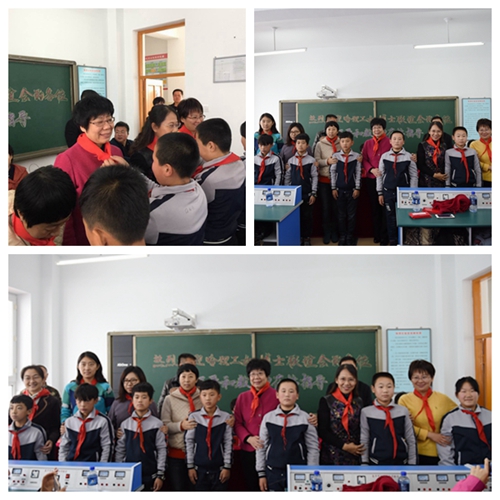 联谊会成员为陈宇婷、陈宇萌、候荣骞、刘茈涵、崔泽宇、董铭凯等6名新立村贫困生每人颁发了助学金1000元,为杨隆基、徐鑫、国欣雪、刘海龙、李莹莹、王可心、于婷、于婷婷、孙宇航、张鹏鹏等10名品学兼优的丰乐乡贫困户学生每人发放助学金300元。联谊会还为学生们带来了会员们捐赠的图书、书包、铅笔盒、彩笔、电子词典、计算器、衣物等共计495件。康庄学校的学生代表为参加活动的女博士联谊会成员佩戴了红领巾表示感谢。八年二班贫困生陈宇婷代表受资助学生发言。她感谢必赢565net官网各级领导和老师的关爱,一定不辜负哈理工女博士联谊会各位领导及教师的爱心捐助,她将珍惜时间,努力学习,用实际行动传承爱心,回报社会。