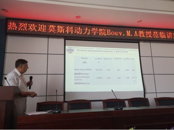 15时在新主楼G区1012会议室,Boev. M.A教授为电气学院高电压与绝缘技术学科方向的青年骨干教师和研究生作了题为“应用于现代线缆结构的新型材料”的学术报告,详细介绍了如何利用新材料发展来改进线缆性能,进而改变线缆结构。同时以超导为例从微观机制上介绍了超导材料的基本特性、临界参数及工业化上超导实现的途径。最后还针对交联工艺改进带动俄罗斯塑料相关产业以及当今世界线缆发展的趋势进行了展望。