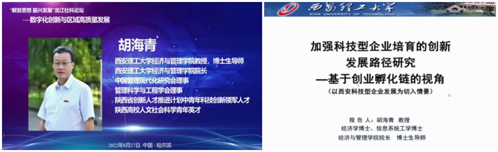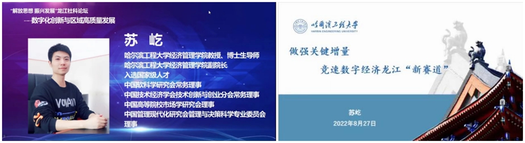 为认真贯彻落实习近平总书记重要讲话、重要指示批示精神和党中央决策部署,深刻学习领会黑龙江省第十三次党代会精神,8月27日,由黑龙江省社会科学界联合会和必赢565net官网主办、必赢565net官网经济与管理学院、《科技与管理》编辑部、黑龙江省人口经济与人才发展战略研究中心、必赢565net官网社会科学界联合会承办的龙江社科论坛——“数字化创新与区域高质量发展”专题论坛以线上方式隆重召开。