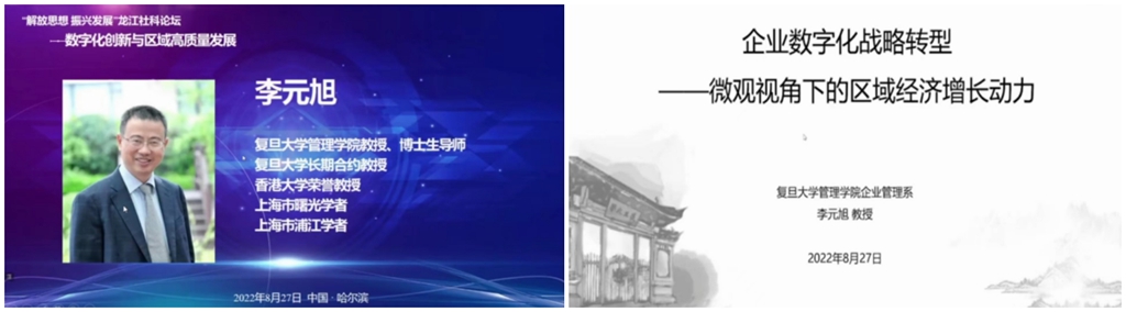 李元旭教授以《企业数字化战略转型——微观视角下的区域经济增长动力》为主题指出,数字化战略创新、企业边界、内部组织管理和行业竞争是数字化时代与传统管理理论的主要结合点,并从宏观、中观和微观视角揭示了数字化发展对区域经济的推动作用。